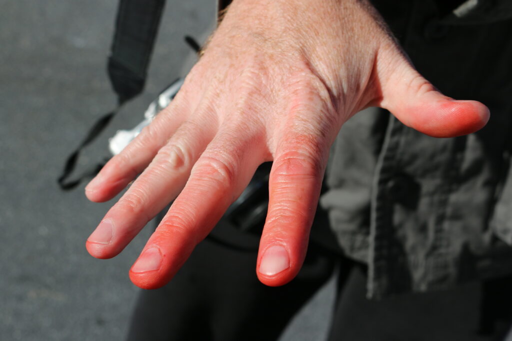 Frostbite occurs in various stages, from mild to severe. Mild cases either require painkillers and antibiotics or don’t necessitate any medical treatment and leave no lasting damage to the skin. Severe cases involve freezing of the skin and deeper tissues, impeding blood circulation, causing joint and muscle dysfunction and the potential need for amputation. Blisters, which can affect all layers of skin, typically form 24 hours after exposure and tissue turns black if it starts dying.